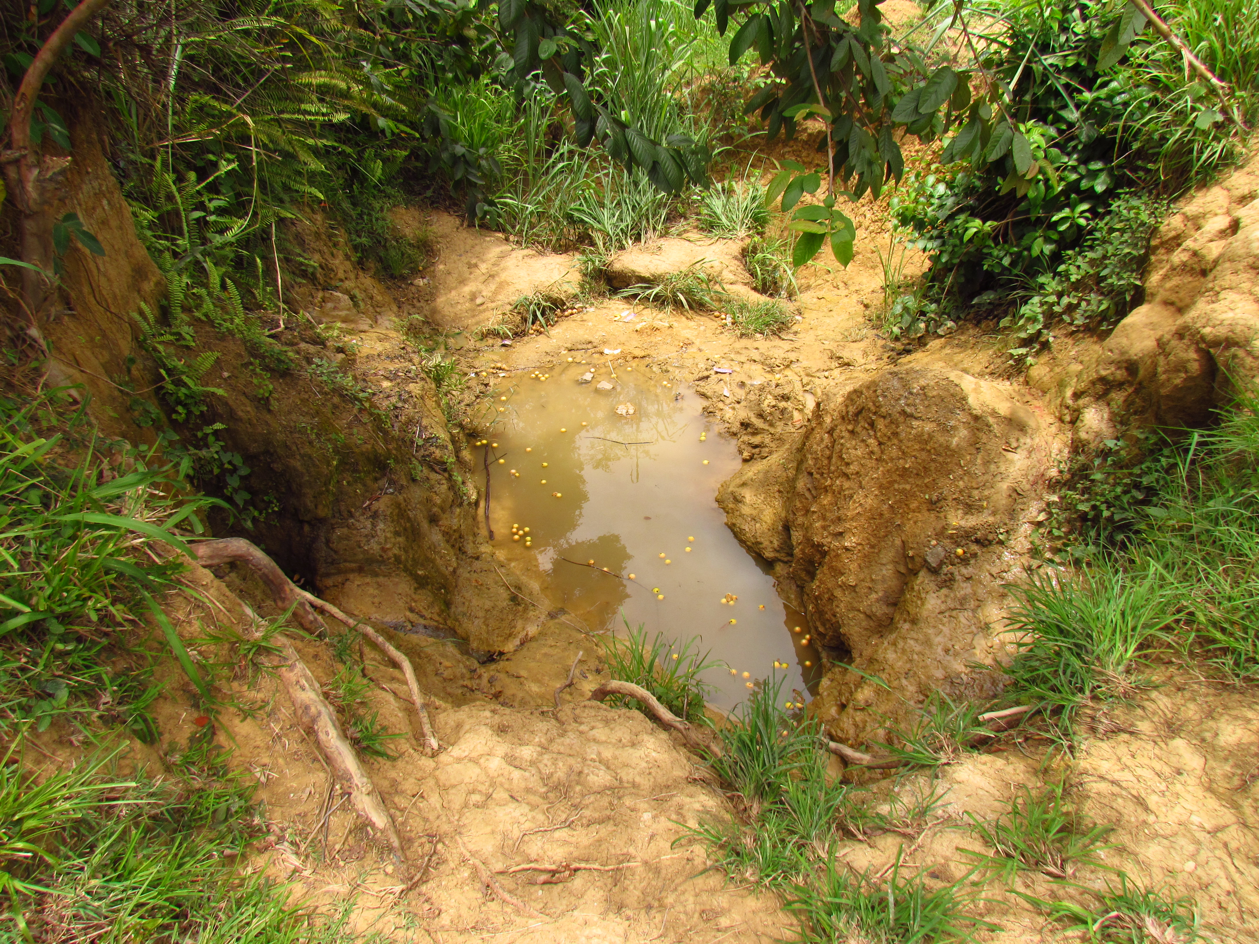 The spring has natural and fresh water but is quickly contaminated by mosquitos and flora. This water source is supposed to provide water for almost 1,000 people!