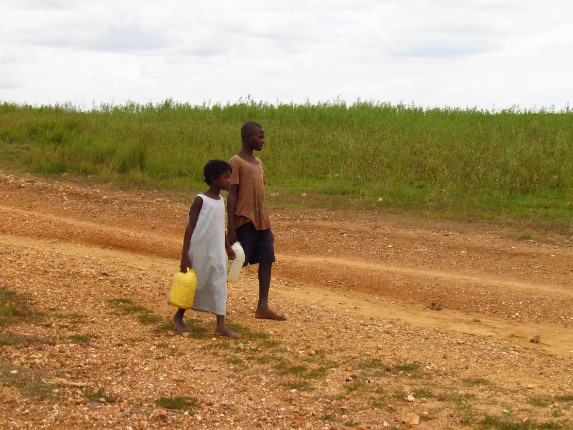 Children on their way to find a spring that has some water for them to collect. Cool to think that now they are collecting water from the rain tank closer to their house and school!
