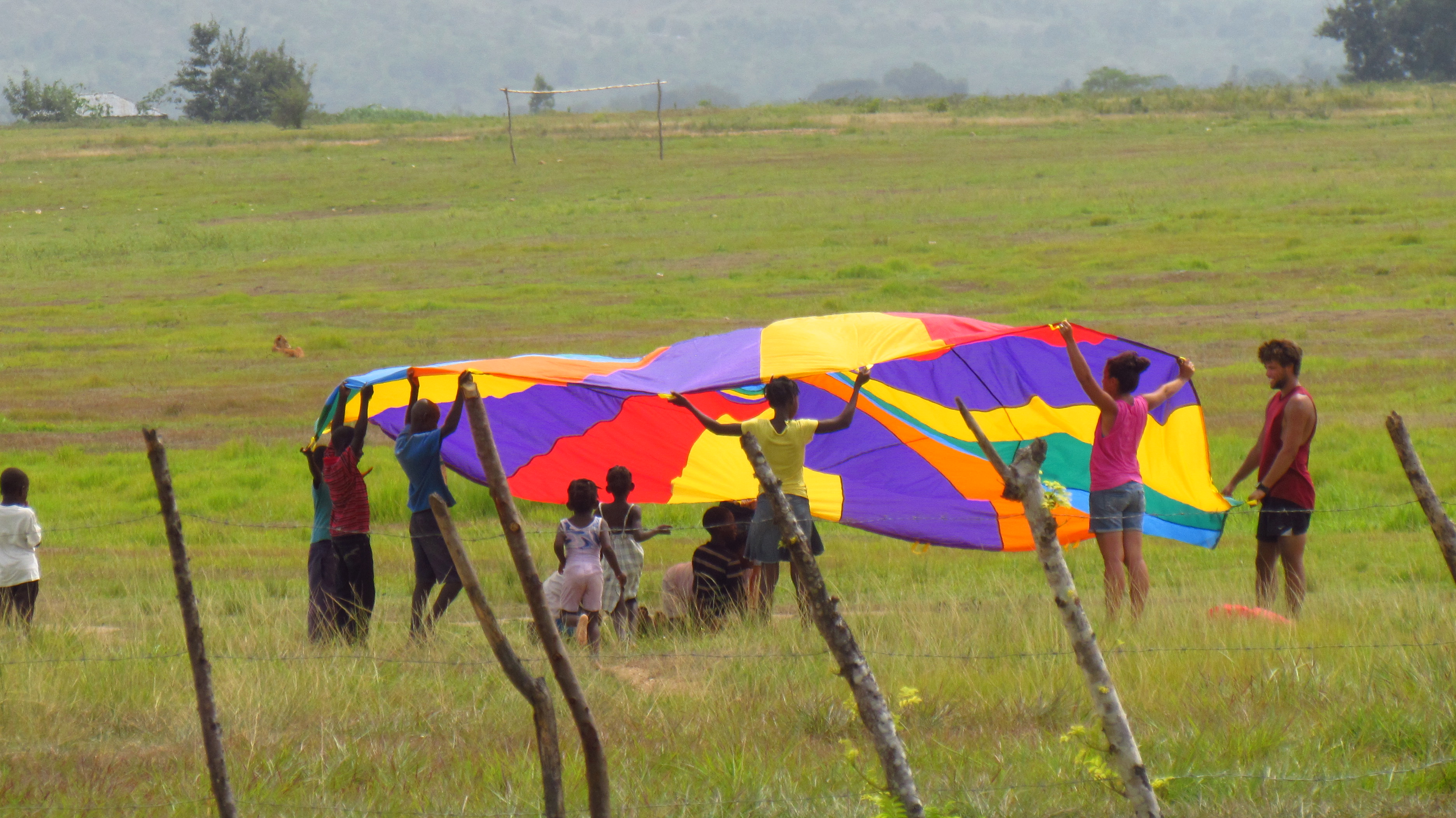 One of my favorite memories from this week: Parachute with Haitian kids. It was so hot that as soon as we created shade, all of the kids would stand under it and not move! Ha!