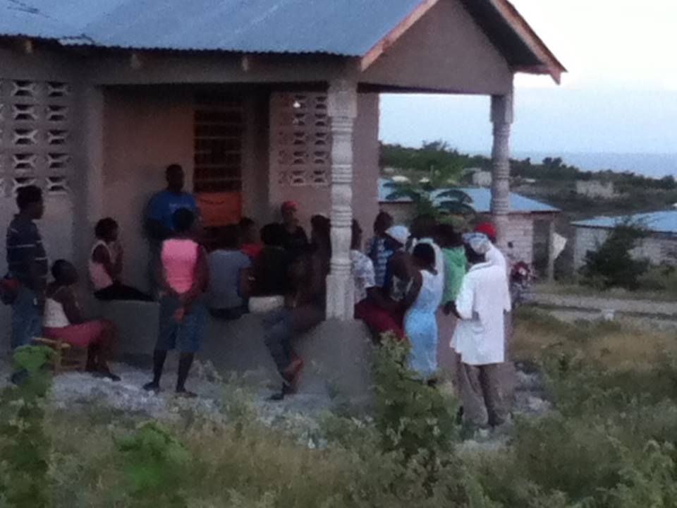 our Haitian friends and Justice Water staff teaching the community about how a rain catchment tank is built and maintained. also, they are using this time to teach upon Biblical truths.